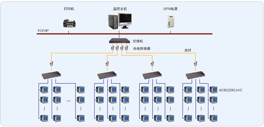高壓配電間內(nèi)我司智能儀表ACR220EL共28臺,采用1根屏蔽雙絞線連接至通訊管理機(jī),進(jìn)行數(shù)據(jù)的集中采集;2車間及3車間內(nèi)我司智能儀表ACR220EL共11臺,采用1根屏蔽雙絞線連接至通訊管理機(jī);1車間內(nèi)我司智能儀表ACR220EL共5臺,采用1根屏蔽雙絞線連接至通訊管理機(jī),進(jìn)行數(shù)據(jù)的集中采集;4車間內(nèi)我司智能儀表ACR220EL共3臺,采用1根屏蔽雙絞線連接至通訊管理機(jī),進(jìn)行數(shù)據(jù)的集中采集;通訊線纜均采取屏蔽線接地,防止強(qiáng)電信號干擾,末端加裝120歐電阻,增強(qiáng)線路信號,保障了數(shù)據(jù)傳輸?shù)膶?shí)時(shí)性。