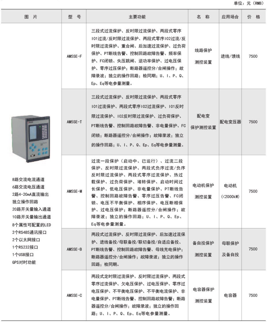 AM系列微機保護測控裝置集保護、測量、控制于一體,適用于35kV及以下電壓等級的用戶終端變電站(所),可實現用戶變電站的保護和測控。應用領域覆蓋電力、水利、交通、石油、化工、煤炭、冶金等行業。具體型號...