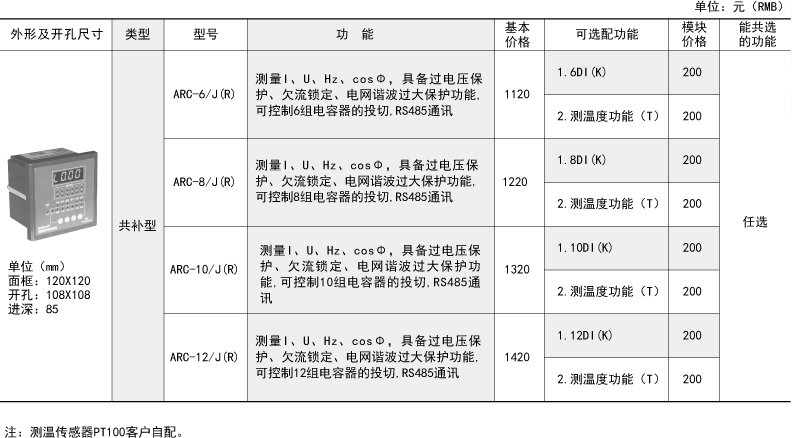 技術要求:輸入三相電壓AC220V;輸入電流AC5A;投切方式順序投切;補償方式三相共補;投切控制路數6路;開關量輸入6路;柜內溫度檢測。