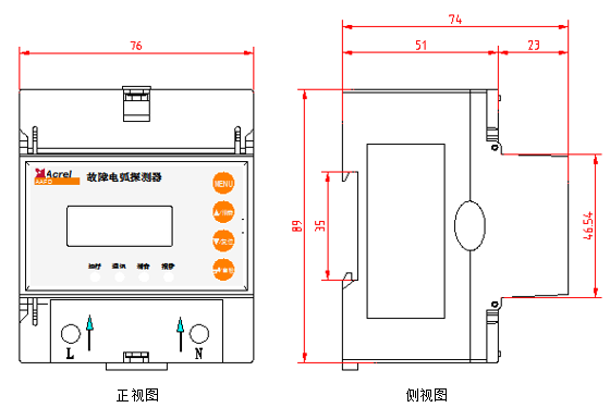 故障電弧探測器(以下簡稱探測器)對接入線路中的故障電弧(包括故障并聯電弧、故障串聯電弧)進行有效的檢測,當檢測到線路中存在引起火災的故障電弧時,可以進行現場的聲光報警,并將報警信息傳輸給上端監控設備,以實現預警火災發生的目的。
