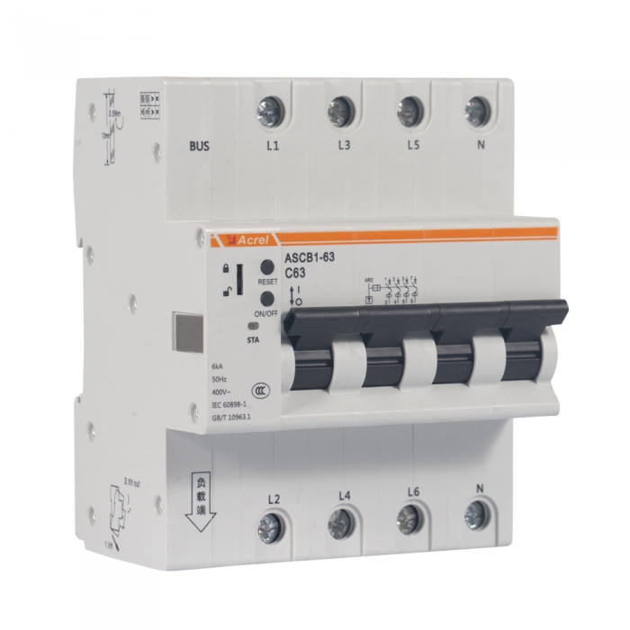 安科瑞ASCB1系列智慧物聯遠程控制斷路器基于人工智能技術,深度學習智能決策,數據采集分析、實時遠程控制、大數據可視化呈現,大幅度提高觸電時生命安全保障,實現終端智慧用電服務與節能管理。主要應用于戶內建筑物及類似場所的工業、商業、 民用建筑及基礎設施等領域低壓終端配電網絡。智能微型斷路器配合智能網關使用,對用電線路的關鍵電氣 參數,如電壓、電流、功率、溫度、漏電、能耗等進行實時監測,具有遠程操控、異常預警、事故跳閘告警、電能計量統計、故障定位等功能。有多種電流規格,1-4極數可選。