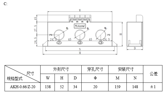 AKH-0.66 Z型系列三相導軌式電流互感器產品外形美觀,接線方便。外殼材料可選用曾強尼龍、PPT、透明聚碳酸酯、阻燃PC/ABS合金,作為交流電流信號采集元件,一般與AMC16、PZ-3O0配套使...