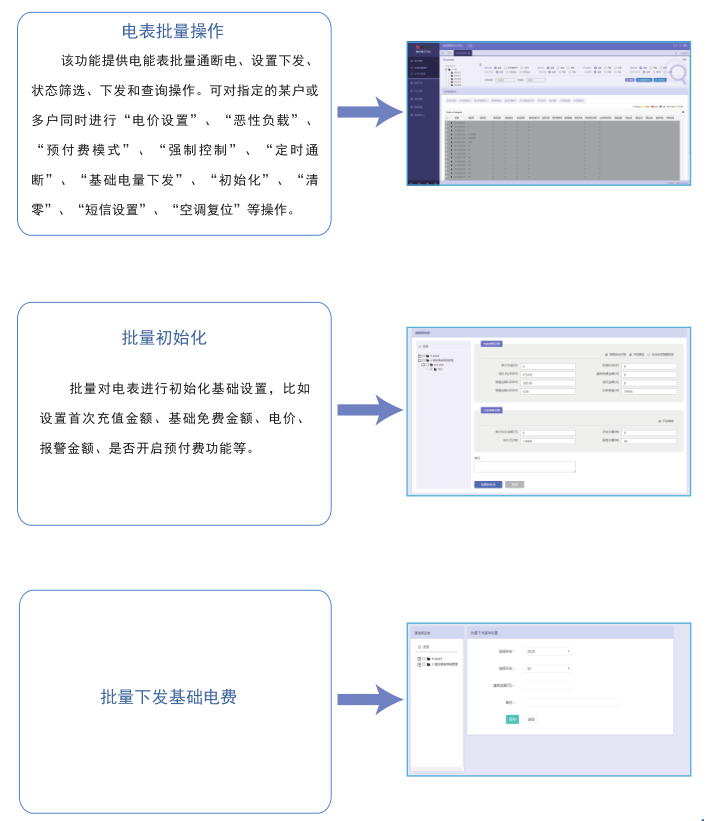 支持預(yù)付費(fèi)功能。可設(shè)置基礎(chǔ)金額,供免費(fèi)使用;可對剩余金額進(jìn)行四級報(bào)警:余額不足報(bào)警(一級)、預(yù)跳閘報(bào)警(二級)、欠費(fèi)報(bào)警(三級)、達(dá)到賒欠上限(四級)報(bào)警。每級報(bào)警都會(huì)導(dǎo)致電表背光常亮,預(yù)跳閘報(bào)警 跳閘方式可設(shè)置為不跳閘、跳閘后自動(dòng)合閘以及跳閘后不合閘等,跳閘后可通過按鍵自行合閘,達(dá)到賒欠上限后電表跳閘,此時(shí)只有繳費(fèi)后才能繼續(xù)合閘使用。