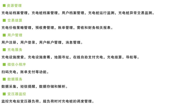 充電樁可選配WIFI模塊或GPRS模塊接入互聯(lián)網(wǎng),配合加密技術(shù)和秘鑰分發(fā)技術(shù),基于TCP/IP的數(shù)據(jù)交互協(xié)議,與云端進(jìn)行直連。云平臺包含了充電收費(fèi)和充電樁運(yùn)營的所有功能,包括財(cái)務(wù)管理、變壓器監(jiān)控和運(yùn)營分析等功能。