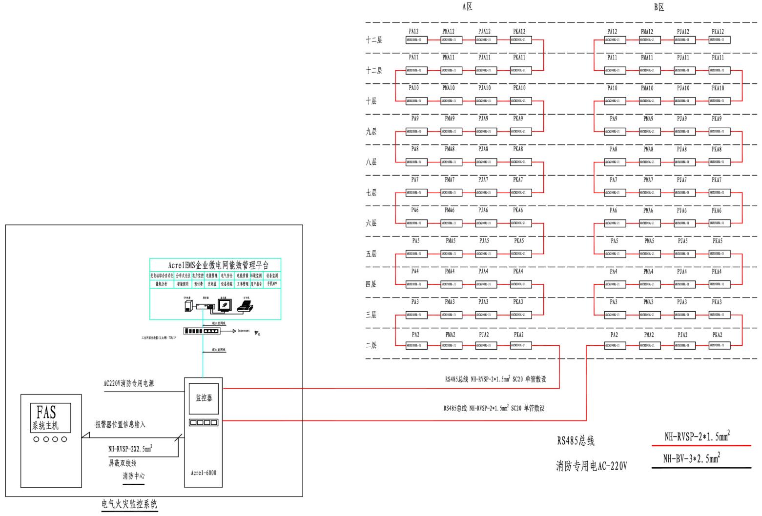 Acrel-6000電氣火災監(jiān)控系統(tǒng),是根據國家現行規(guī)范標準由安科瑞電氣股份有限公司研發(fā)的全數字化獨立運行的系統(tǒng),已通過國家消防電子產品質量監(jiān)督檢驗中心的消防電子產品試驗認證,并且均通過嚴格的EMC電磁兼容試驗,保證了該系列產品在低壓配電系統(tǒng)中的安全正常運行,現均已批量生產并在全國得到廣泛地應用。該系統(tǒng)通過對剩余電流、過電流、過電壓、溫度和故障電弧等信號的采集與監(jiān)視,實現對電氣火災的早期預防和報警,當必要時還能聯動切除被檢測到剩余電流、溫度和故障電弧等超標的配電回路;并根據用戶的需求,還可以滿足與AcrelEMS企業(yè)微電網管理云平臺或火災自動報警系統(tǒng)等進行數據交換和共享。