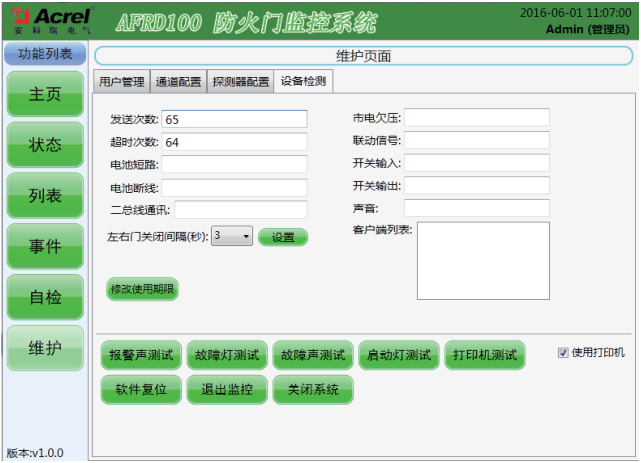 該界面可以直接查看和設置一些系統(tǒng)運行參數(shù),獨立測試監(jiān)控器部分功能,但只有“管理員”及其以上級別才有操作權(quán)限。