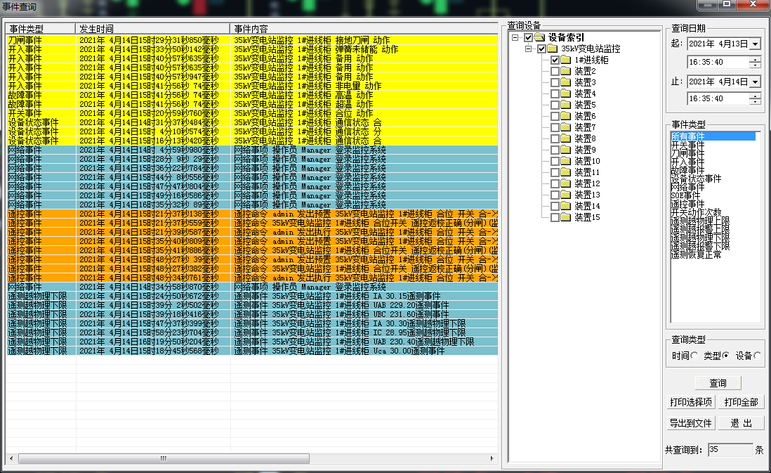 Acrel-1000綜合自動化監(jiān)控系統(tǒng)能夠對遙信變位,保護動作、事故跳閘,以及電壓、電流、功率、功率因數越限等事件記錄進行存儲和管理,方便用戶對系統(tǒng)事件和進行歷史追溯、查詢統(tǒng)計、事故分析。可以按時間、類型和設備進行查詢和排序。