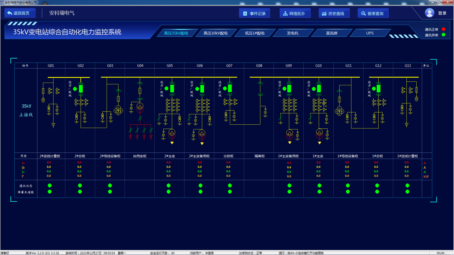 Acrel-1000綜合自動化監(jiān)控系統(tǒng)可以直觀顯示一次系統(tǒng)圖,并實時顯示各電壓等級各回路的遙測量、遙信量和報警信號等。